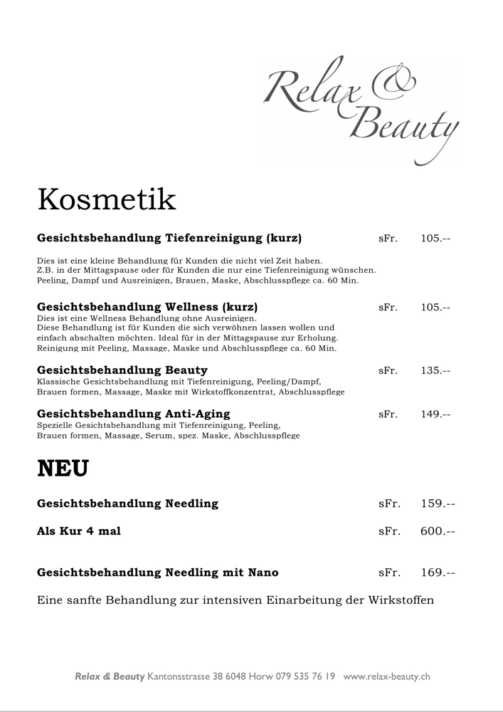 • Preisliste Kosmetik