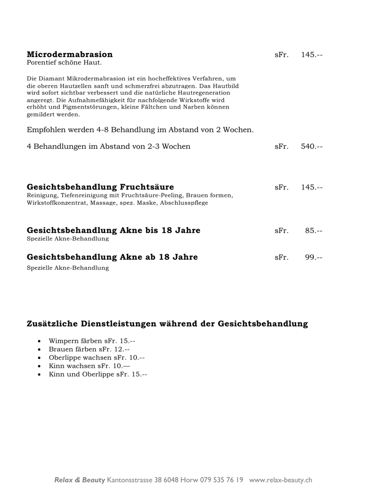 • Preisliste Haarentfernung